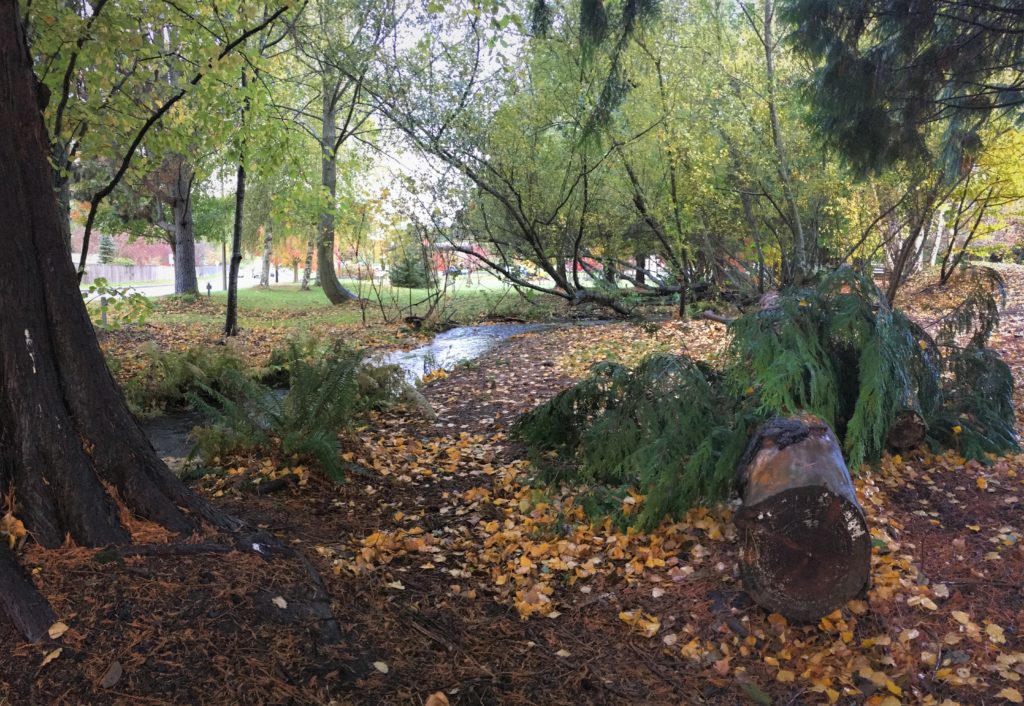 Centennial Park was dedicated in 2008 in celebration of the city’s first 100 years. In 2018, community volunteers and organizations including Western Washington University Huxley College of the Environment spent many hours improving the site by building soft surface trails, restoring riparian habitat along 400’ of Dogfish Creek, and creating new interpretive signage. This park is the site of a former nursery, so many unique and beautiful trees were already flourishing in the park. The Poulsbo Tree Board worked with others to enhance the Centennial Park Arboretum in 2019-2020 with the planting of an additional 17 trees and tree identification signage.