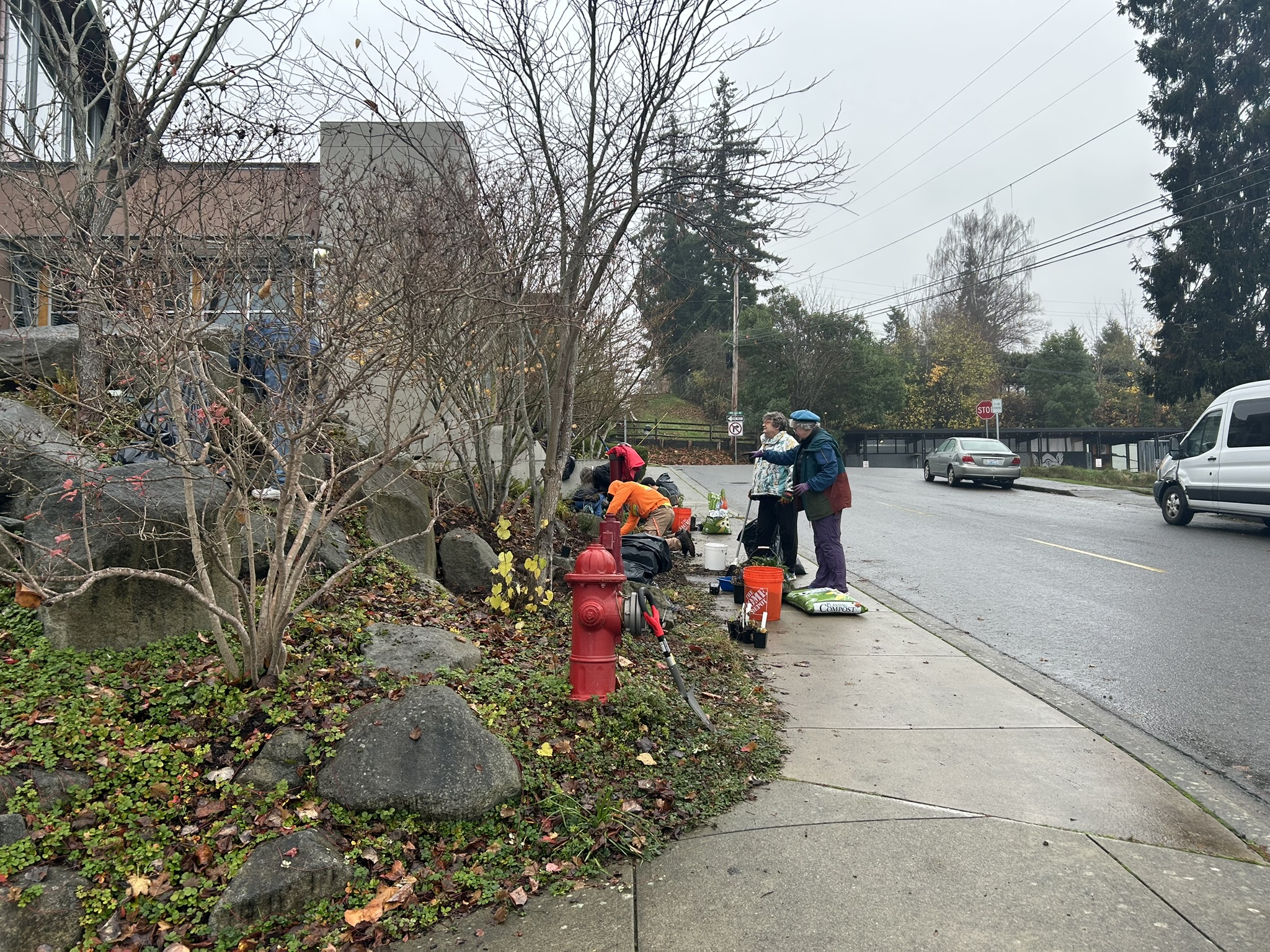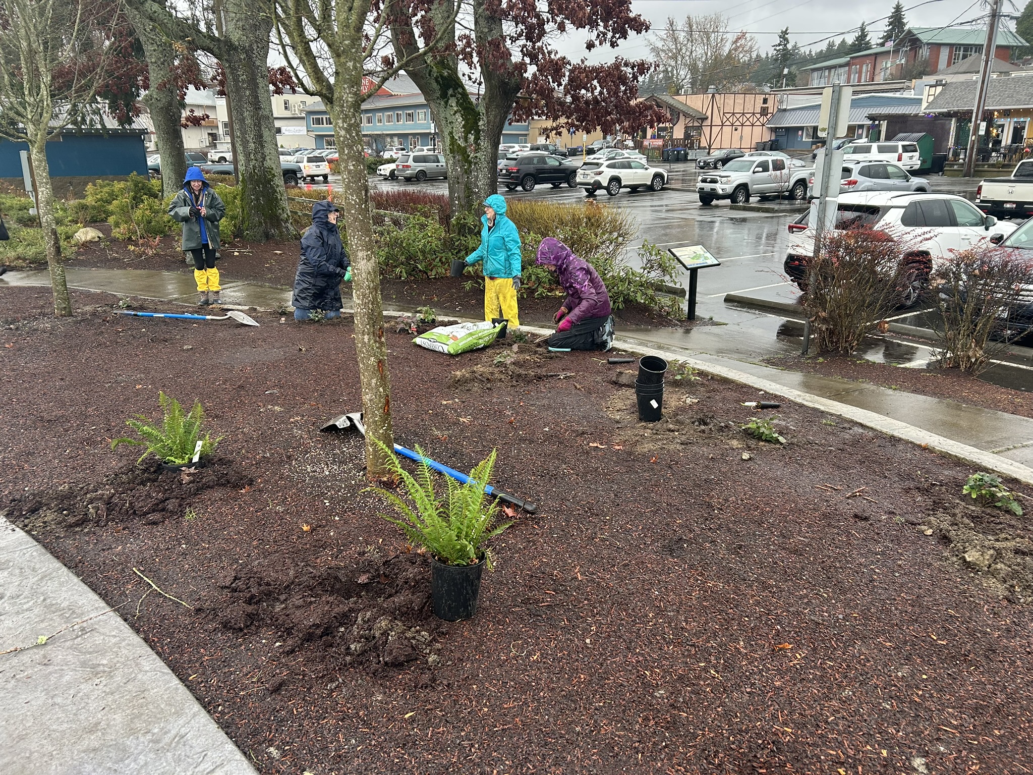 Fall planting parties in late 2024 expanded the pollinator corridor with help from the Poulsbo Garden Club, Poulsbo Rotary, and community volunteers. These efforts introduced mostly native, pollinator-friendly plants into city parks.