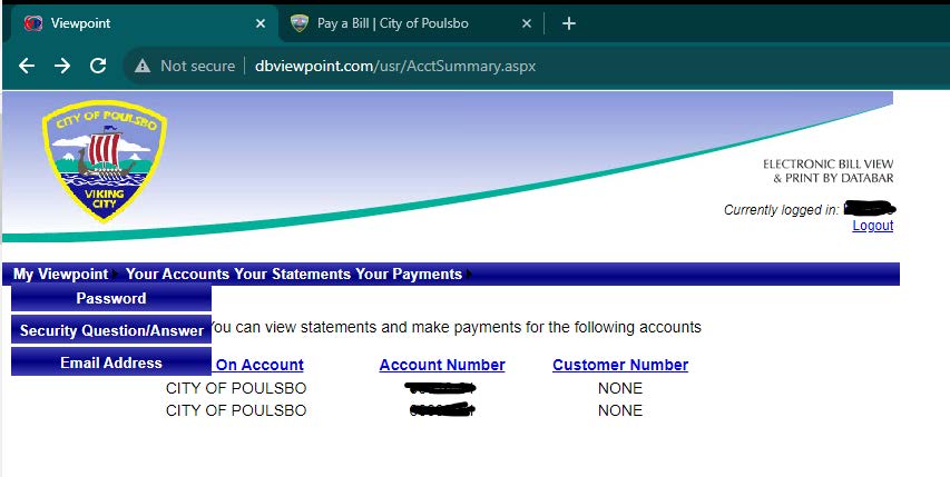 If you do not have a username and password with the City of Poulsbo, you can make a one‐time utility