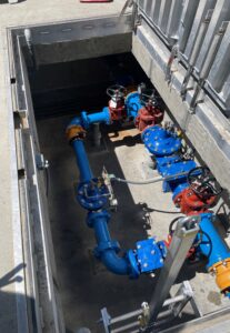 Construction on this project wrapped up in July 2023, and has been completed under budget. This important project upgraded and replaced two PRVs (or pressure reducing vaults) within our water system. PRVs are critical in balancing and reducing water pressures throughout the City-wide system and for providing sufficient fire flow and meeting peak demand during the summer months. The Mesford PRV (near NK High School) was originally constructed in 1974 and the Swanson PRV (near the end of Swanson Way) was originally constructed in the 1950s. The new PRVs provide increased system resiliency and redundancy.
