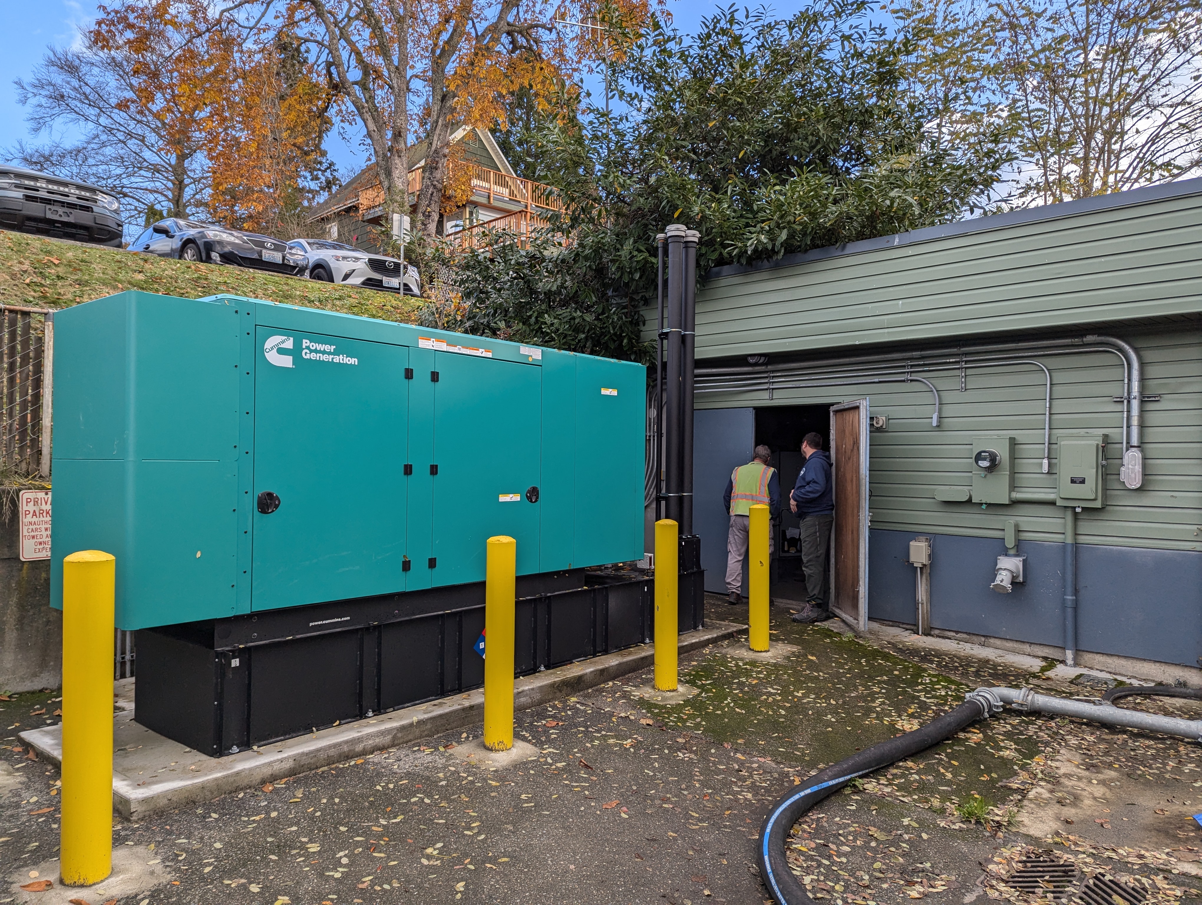 The Marine Science Center (MSC) LS Generator project is now complete. The generator is fully functional and able to keep the sewer lift station operational during power outages. The MSC lift station provides sewer for all of downtown Poulsbo and is critical to pump sewer up to the Central Interceptor. As part of this project, a standby generator was installed with an automatic transfer switch. When the power goes out, the generator automatically turns on and continues sewer operations without interruption to service. This increases system resiliency and reduces the risk of potential sewer overflows into Liberty Bay during inclement weather.