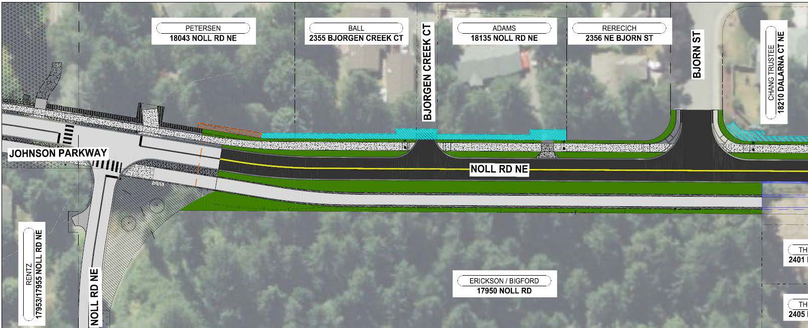 - New 10′ wide sidewalk connecting Noll Road to Poulsbo Elementary School