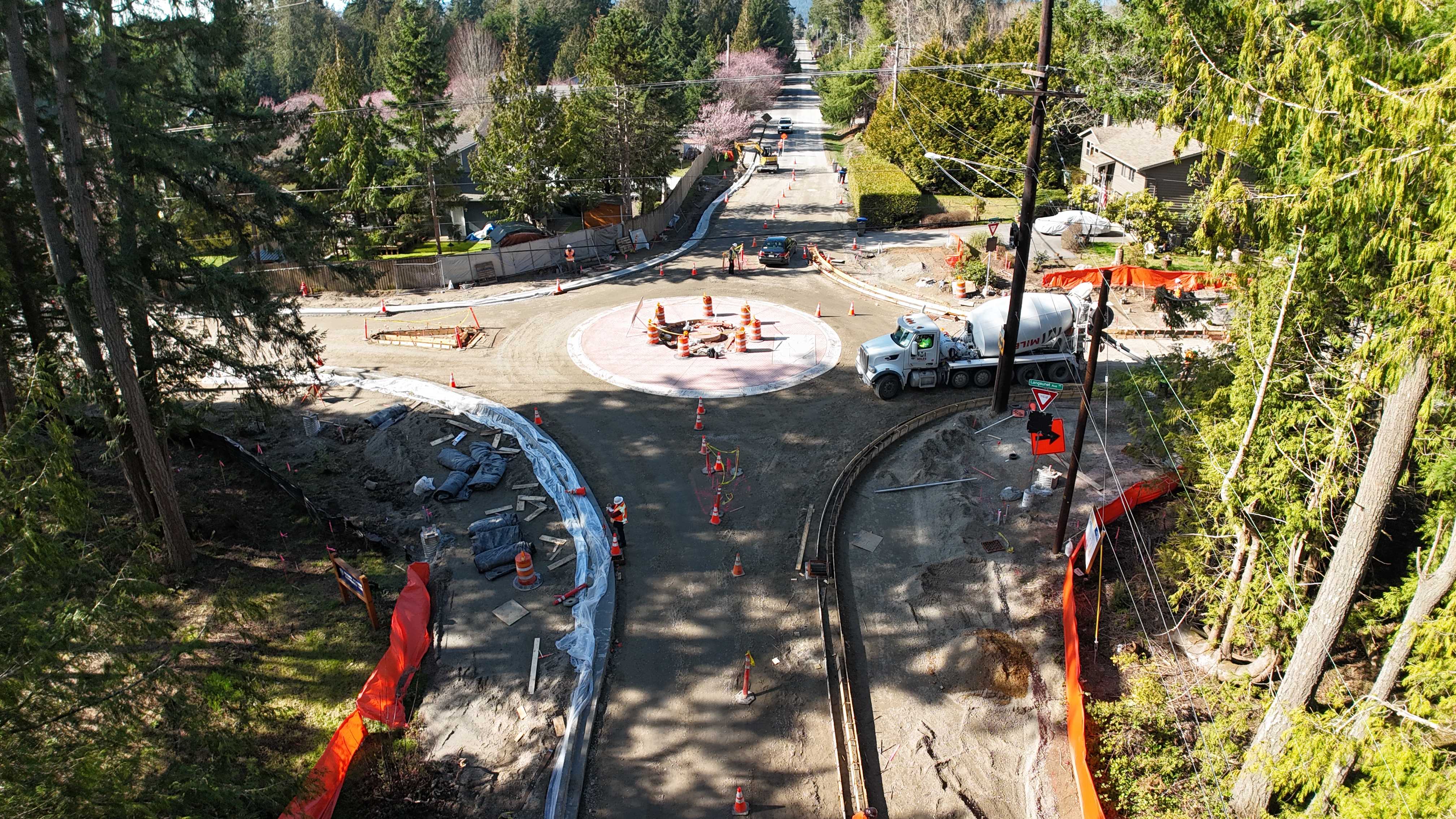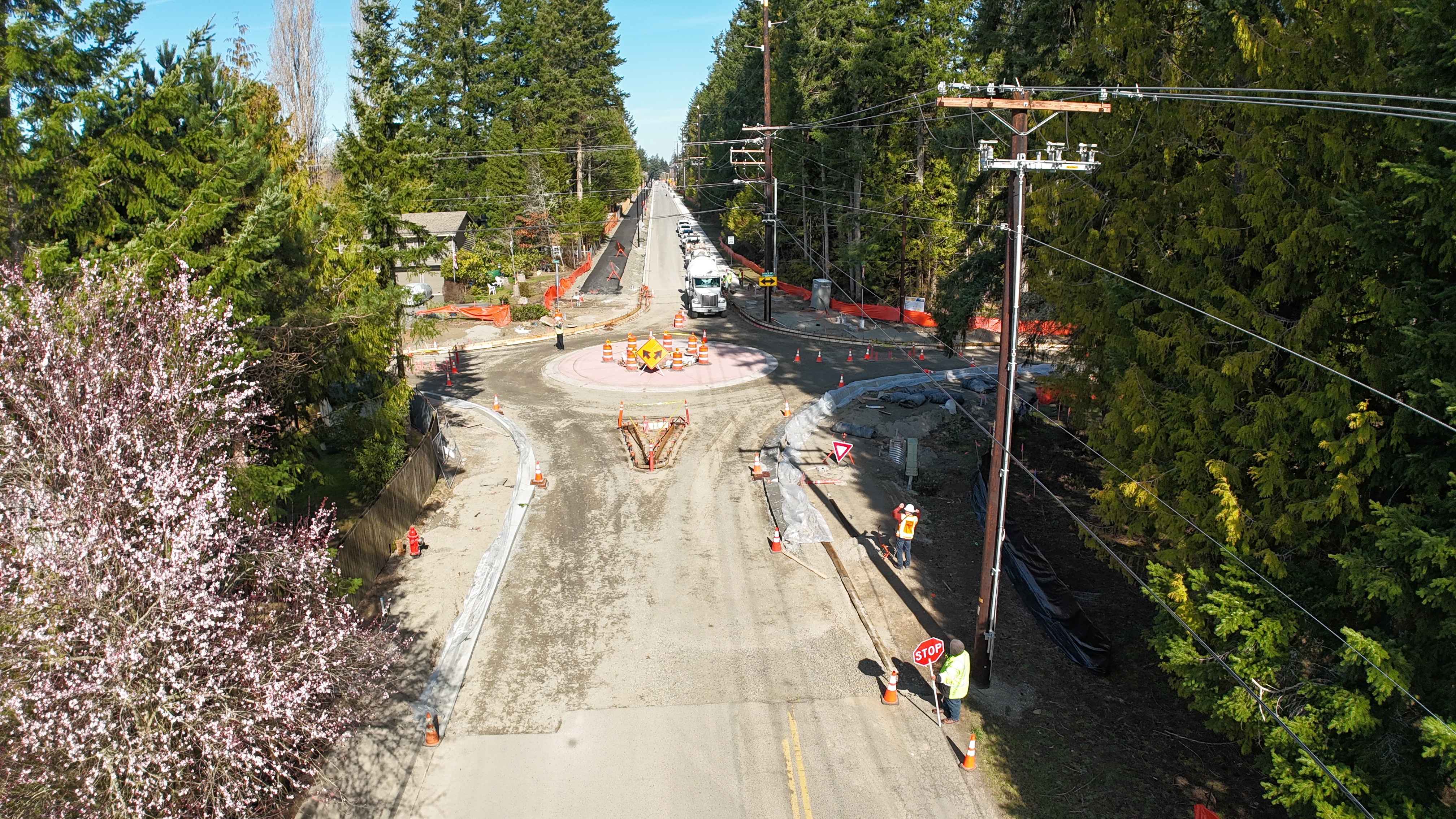 This roadway improvements project includes a roundabout at the intersection of NE Mesford Road and Noll Road, and extends from NE Mesford Road to NE Lincoln Road along Langaunet Lane NE and Maranatha Lane NE. Roadway illumination, sidewalk, and a shared-use path are also components of this new road. In addition to the Langaunet to Maranatha roadway improvements, this project along Noll Road will include a sidewalk and shared-use path to NE Bjorn Street and Poulsbo Elementary School. Raised crosswalks will provide traffic calming and enhanced pedestrian safety by increasing the visibility and level of awareness of a preferred pedestrian crossing. The project was designed to create safe and accessible routes for vehicle, bike, and pedestrian traffic while meeting complete street goals.