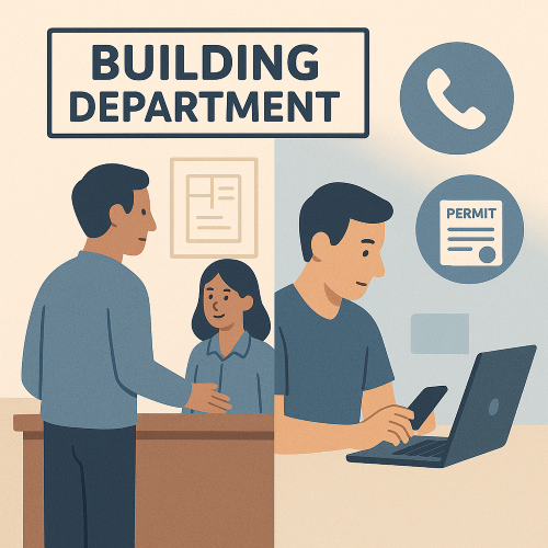- While the building department is your primary point of contact, depending on the proposal you may also need to talk with other staff about utility connections and parking requirements.